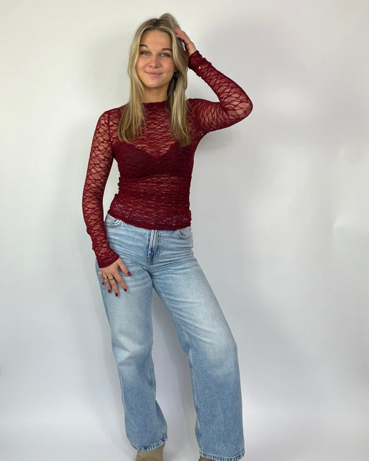 UitverkochtJuul lace top bordeauxrood