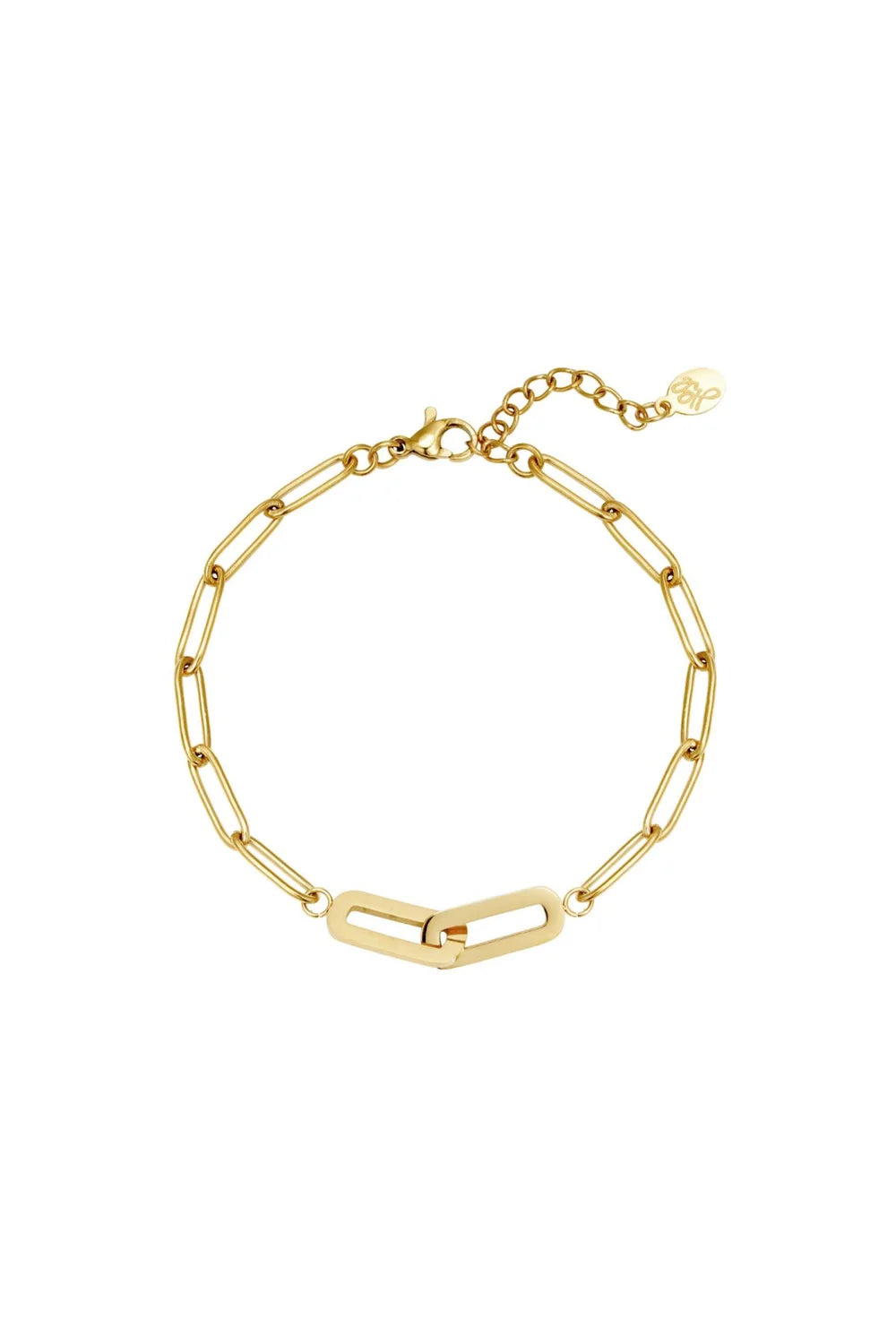 De armband is roestvrij staal en verkrijgbaar in de kleuren goud en zilver.