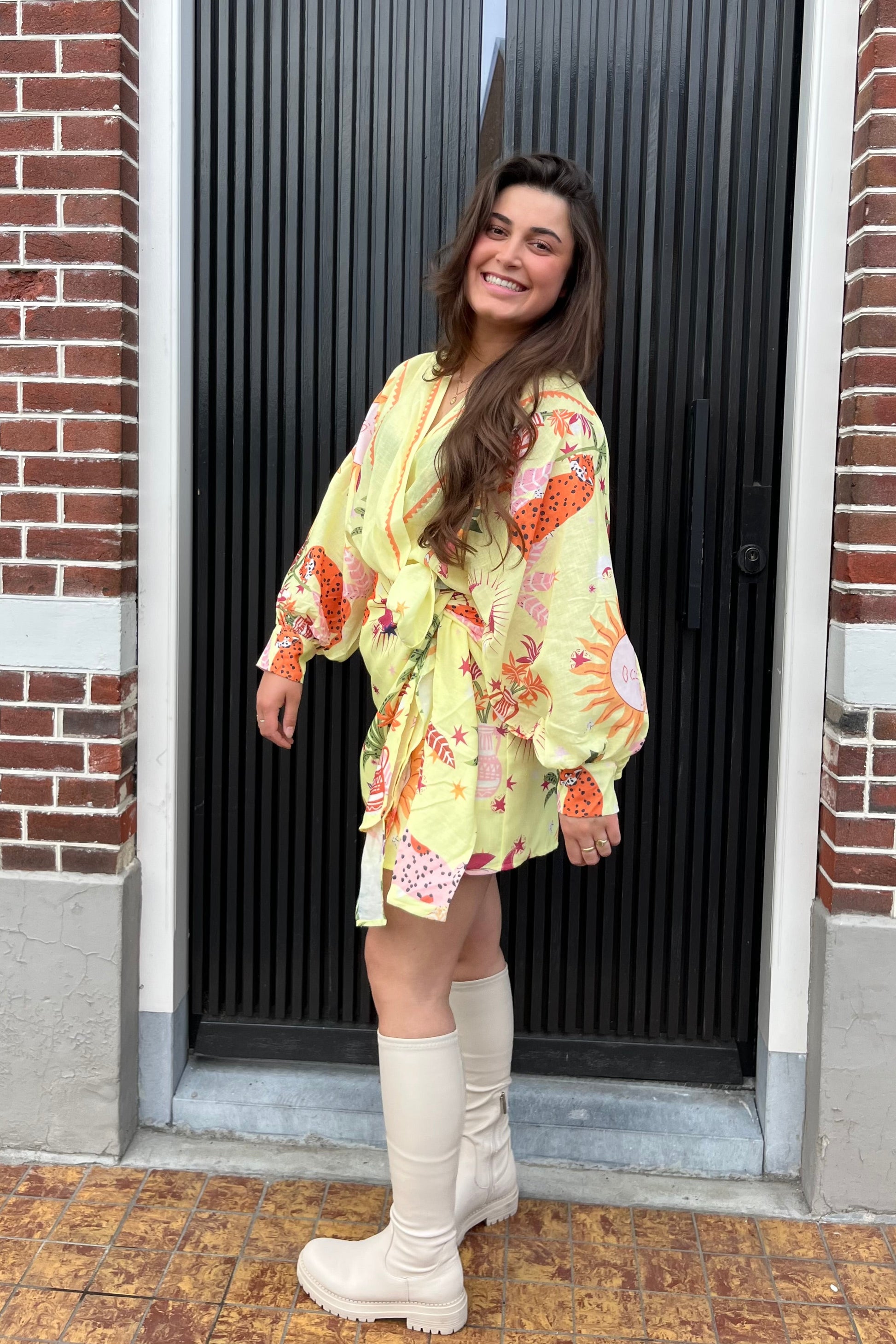Liz wikkeljurk geel