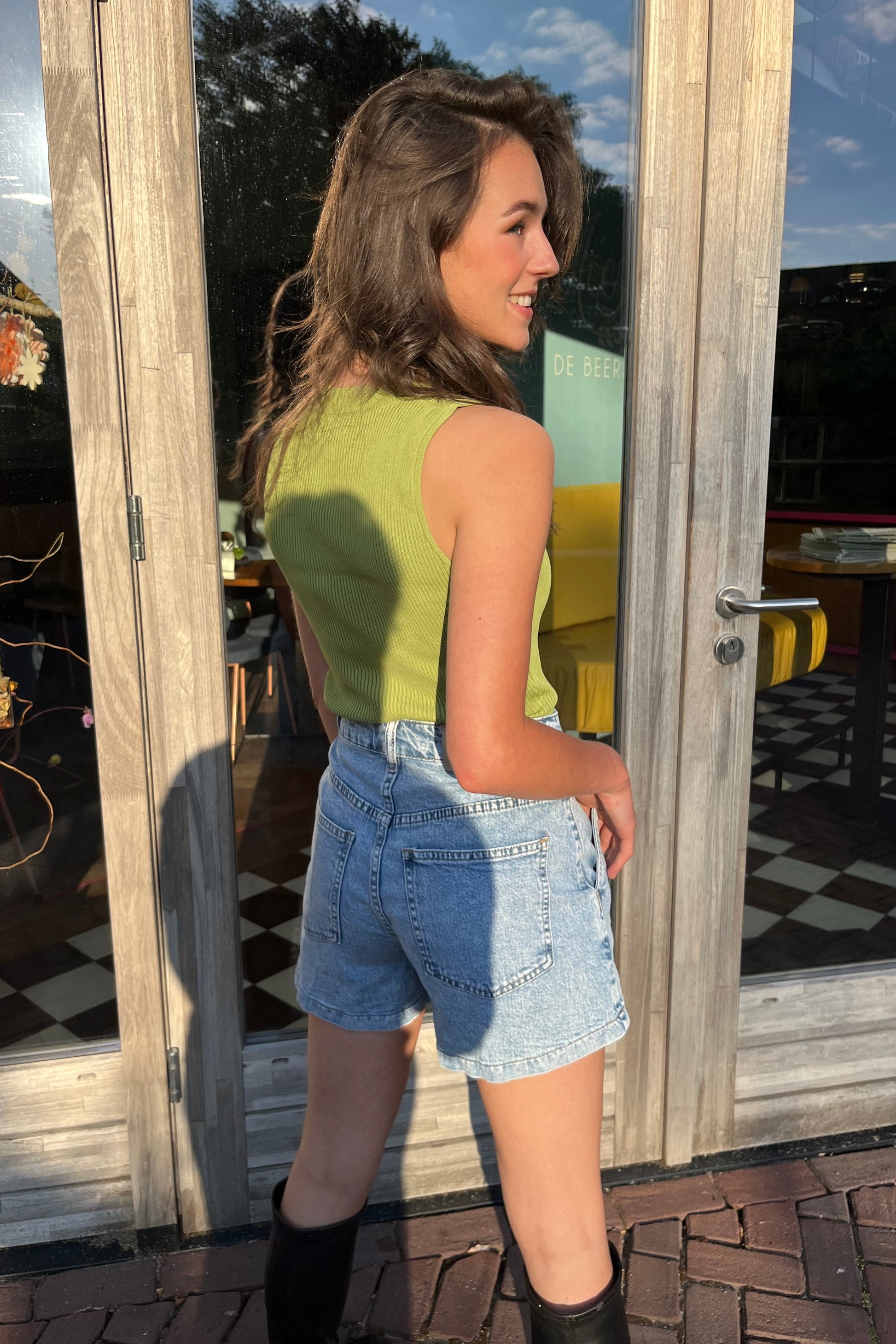 Nauwsluitende top met ronde hals. Hoe gaaf is deze kleur!