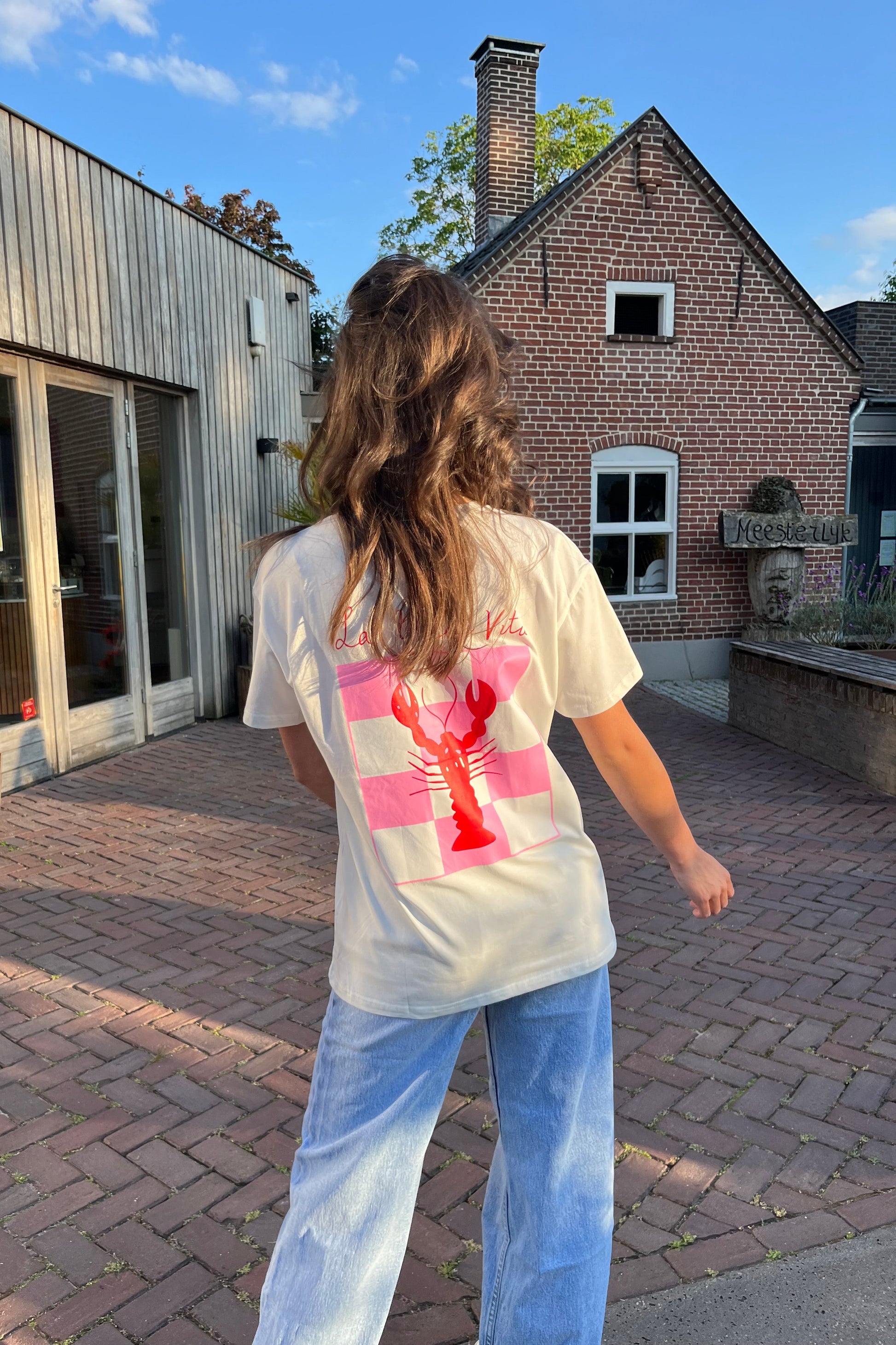 Hoe leuk is dit witte T-shirt met opdruk. Het shirtje is oversized en is ONE SIZE.